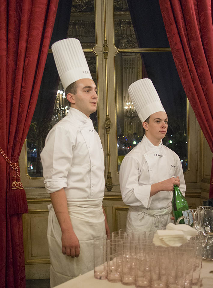 Les élèves de l’école Ferrandi, en grande tenue, assurent le service du buffet.